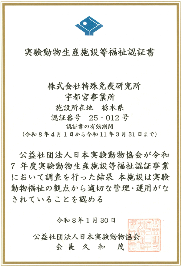 実験動物は生命科学の進展や医療技術の向上、新薬の開発等に必要不可欠な生物資源であり、実験動物の科学上の利用にあたっては、動物が命あるものであることに鑑み、科学的合理性に基づき、動物の福祉に配慮し、動物に対する感謝の念と責任をもってあたります。3Rsに最大限の配慮をして適切な動物実験の実施に取り組みます。また、人の生命、身体等への侵害を防止し、周辺の生活環境の保全にも努めます。