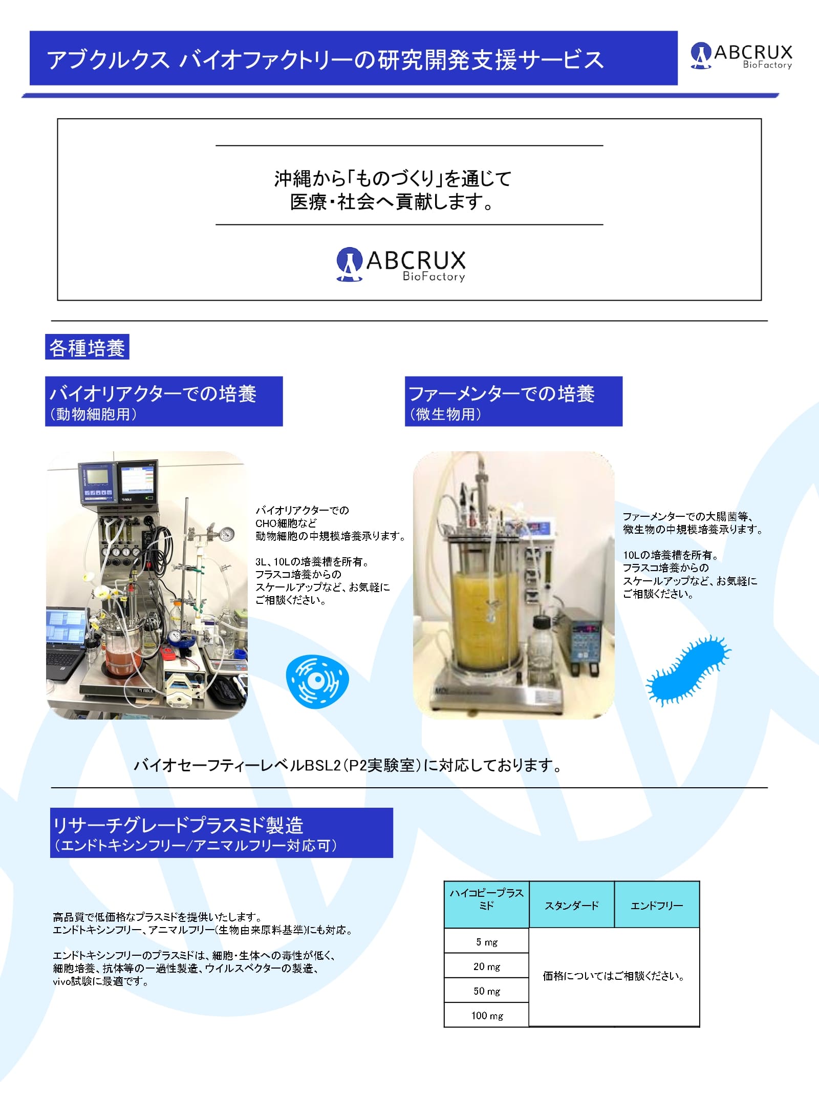 株式会社アブクルクス・バイオファクトリーは、バイオテクノロジー関連の研究開発を支援し、抗体、タンパクの製造などのサービスを提供する企業です。